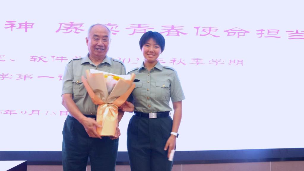 活动中,大学生退役士兵、软件2404班仇一凡代表同学们向梁老师送上诚挚的祝福,并分享了自己的从军经历和学习感悟。她表示,作为一名退役大学生士兵,更应弘扬抗战精神,传承红色基因,努力学好专业技术,努力为科技强军、科技强国尽一份力,为强国建设挺膺担当。
