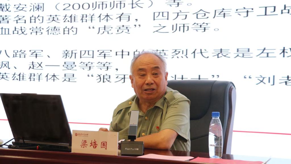 梁培国以“弘扬抗战精神,激发奋进力量”为题,从深刻认识中国人民抗日战争暨世界反法西斯战争胜利80周年的重要历史和现实意义出发,通过讲述史实和标志性历史时间,带领师生回顾了抗战那段刻骨铭心、波澜壮阔的历史,深刻阐释了中国共产党是全民族抗战的中流砥柱。他结合个人家族抗战经历和优良家风传承,生动解读了伟大抗战精神的深刻内涵。他指出,正是抗战精神中“天下兴亡、匹夫有责”的爱国情怀和百折不挠的奋斗意志,支撑中华民族实现从站起来、富起来到强起来的历史跨越。他勉励青年学子铭记历史、珍爱和平,坚定不移听党话、跟党走,将抗战精神转化为脚踏实地、奋发有为的实际行动,矢志以青春肩膀扛起强国重担。现场师生深受触动、备受鼓舞。