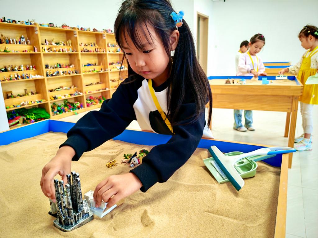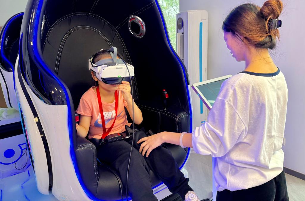 随后,十余名研究生志愿者引导孩子们开展沙盘互动、VR探秘、“我画我心”等活动。沙盘互动环节,孩子们通过构建自己的沙盘世界,在方寸之间展现内心丰富的情感与想象,让内心的世界得到了充分展现和释放。在VR探秘环节,借助虚拟现实技术,孩子们仿佛身临其境,亲身感受大脑的神奇运作。佩戴上VR眼镜后,实验室内随即响起了阵阵惊叹声。志愿者在一旁细心观察孩子们的反应,适时讲解VR场景中的科学知识。在“我画我心”环节,志愿者通过有趣的案例和生活经验,帮助小朋友理解不同脑区的功能。孩子们用画笔描绘出心中对大脑的认知和理解,每一幅画作都充满了童真与创意。