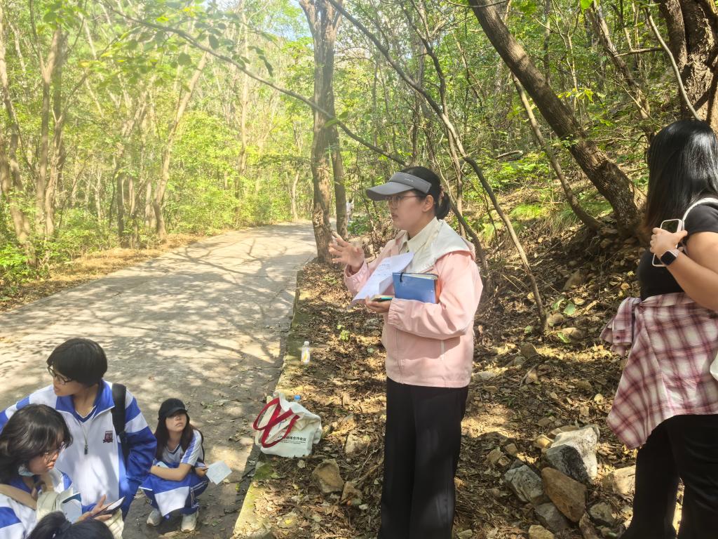 在典型土壤剖面观察点,师生对褐土剖面进行了系统分析,教师详细讲解了腐殖质层、淋溶层与母质层的形成机制及其环境指示意义。学生运用专业工具测定各土层理化指标,结合气候与植被条件,完成土壤初步分析报告,实现了从微观特征到宏观环境解读的能力跨越。