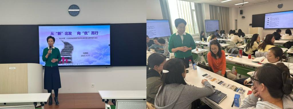 心理学科正高级教师马丽莉以“从‘新’出发 向‘优’而行”为学员作专题报告。报告围绕特殊教育教师的职业特点与成长需求,系统分析特殊教育工作中常见的心理压力源与情绪调节难点,从自我关怀、职业认同、师生沟通等多个角度,分享融合理论指导与实践经验的调节策略。讲座中设置教师压力应对测试环节,学员们通过排列标注不同压力场景与应对方式的卡片,直观呈现自身的压力应对模式,在互动中增进自我觉察,并通过小组交流,共同探讨多样化的压力缓解路径。