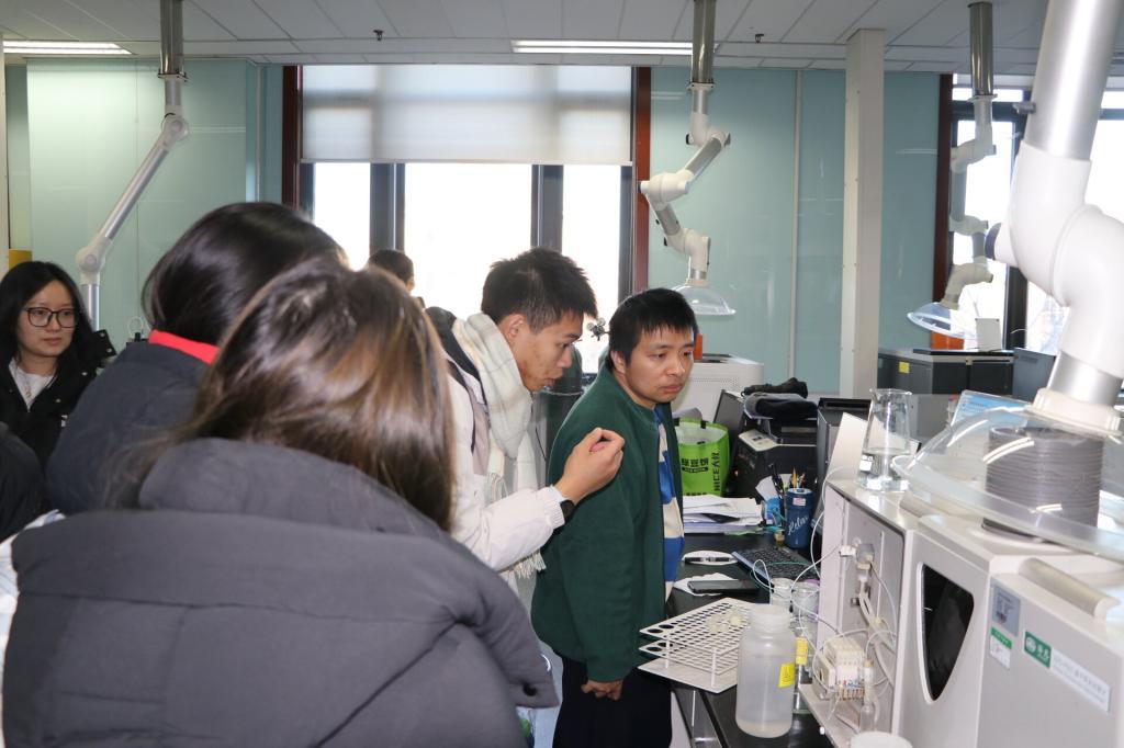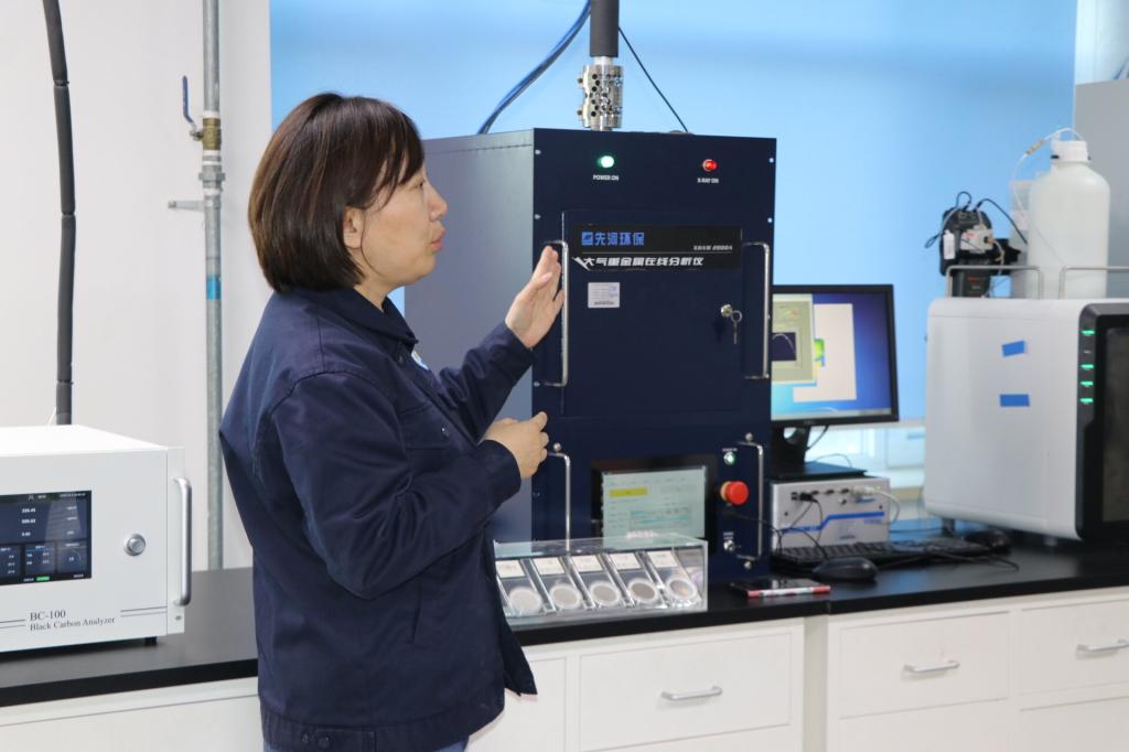 在大气污染综合观测实验室内,中心高级工程师元洁向同学们讲解了实时动态显示的空气质量数据与污染物来源解析图景,清晰呈现了大气治理的科技支撑与实践路径。先进的在线监测设备及其背后的分析逻辑,让在场师生对“精准治污、科学治污”有了更为系统的认识。