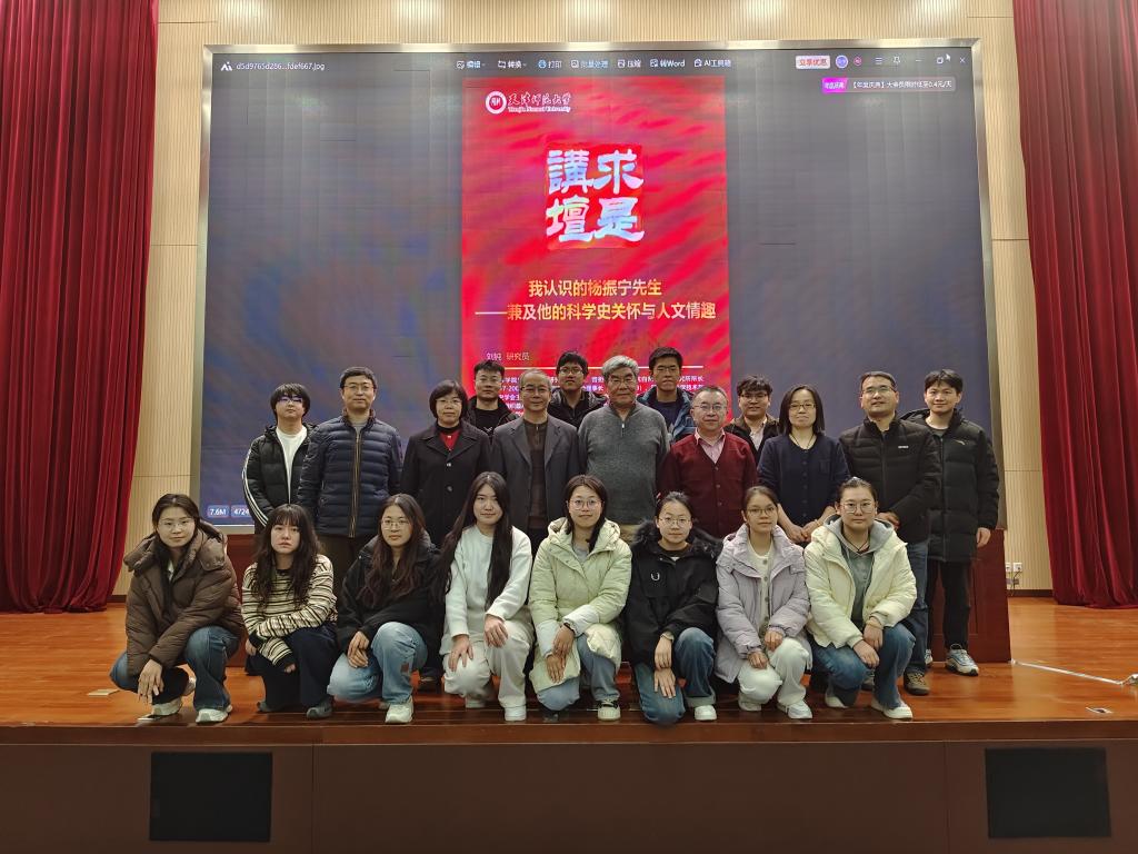 报告结束后,与会师生围绕杨振宁先生与科学史及历史人文的关系、杨振宁先生的事迹对当代青年的启示等内容,与刘钝研究员进行了深入而富有启发的交流。此次报告既生动又真挚,不仅是对刚刚辞世的杨振宁先生的深切缅怀,更让在场的师生深刻感受到一位既拥有科学高度又兼备人文温度的学术大师的榜样力量。