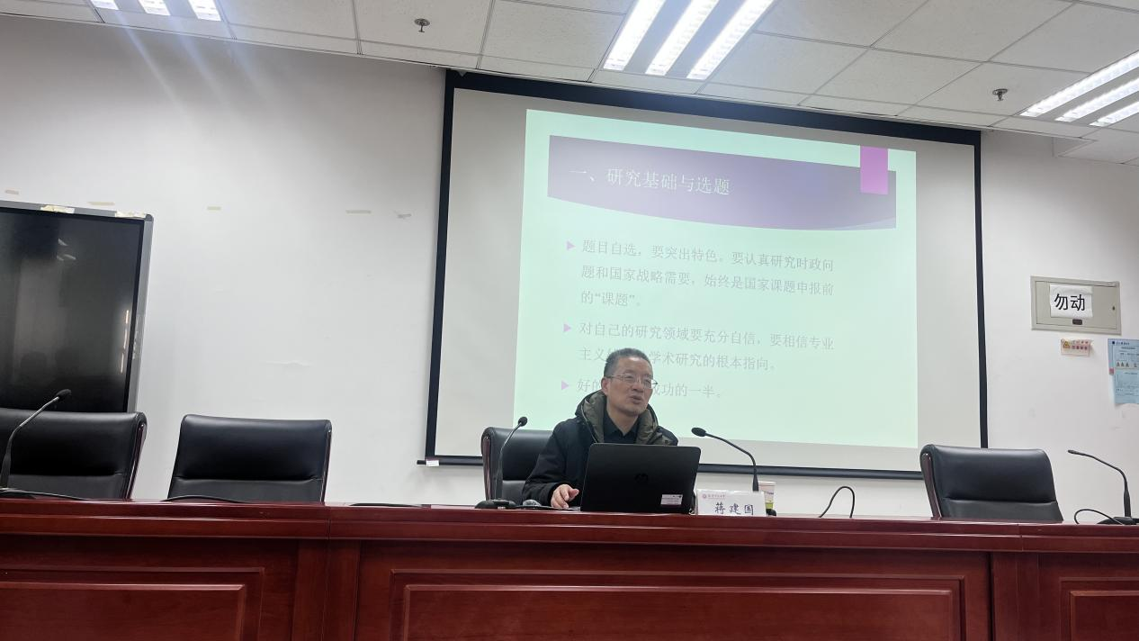 本站讯(通讯员 李柯剑)12 月 25 日,新闻传播学院于图 C213 教室举办高级别项目申报专题培训会。本次培训特邀复旦大学特聘教授、国家社科基金重大项目首席专家蒋建国担任主讲嘉宾,新闻传播学院副院长林靖主持会议,全校多学科教师代表参加。