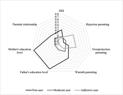 图1. 三组使用者在家庭因素的差异