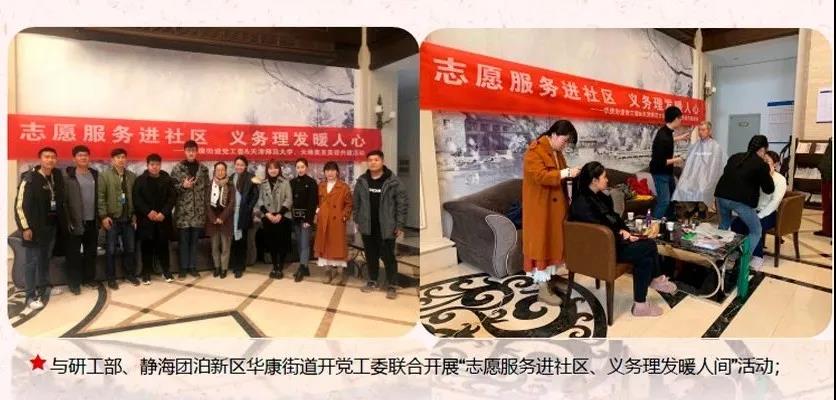 服装艺术系全体教师积极践行社会主义核心价值观,深入开展社会服务,助力文化建设。与静海团泊新区华康街道党工委联合开展“志愿服务进社区、义务理发暖人间”活动;为河东区大王庄街道社区工作人员设计用于各项志愿服务的工作服。立足天津、服务区域文化发展,与天津五大道、民园广场管委会、天津市博物馆、自然博物馆、拜石博物馆等建立文创设计平台;与河北省雄安新区容城人民政府、秦皇岛市北戴河区政府达成实践教学战略合作。在国际交流方面,多名教师受邀前往德国、法国、日本、新西兰、澳大利亚、泰国等国家作学术交流和中华文化推广。