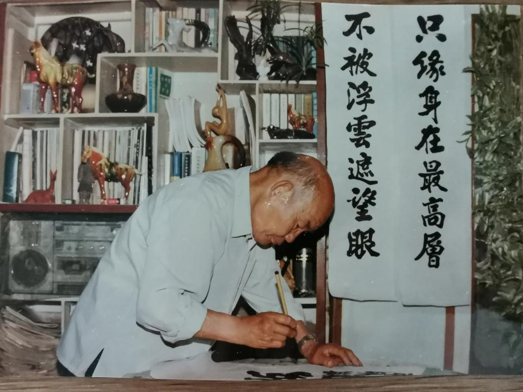 上世纪八十年代,母亲赵慕平因为没有评上中学一级教师职称而没有分到房子,不免闷闷不乐,时年已经七十七岁的老父亲专程从河北省易县辗转两次火车和长途汽车,来到当时位于天津南郊区的她家,给女儿赵慕平写下了这幅字,对她说:“为师者,育人才是你的最高追求,外在的头衔帽子都如临川先生所言的‘浮云’!”